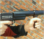 The SJ-102 launcher is a single-shot, shoulder-fired launcher that fires a tear gas shell and rubber ball shells. The SJ-102 can fire a wide variety of 38mm, 40mm rounds, including explosive, anti-personnel, smoke, buckshot, flechette, and illumination.