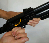 - Butte plate with the shock absorber spring : We minimized the firing rebound impact to the gunner's shoulder